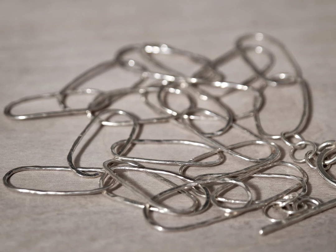 Lightweight, comfortable and easy to wear. Each link is formed individually then finished with a beautiful texture that plays with the light.