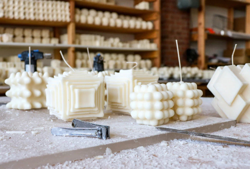 Andrej Urem transforms candles into works of art by hand-pouring and sculpting wax into architectural forms. Made with USA-grown soy, these candles are designed to burn a cylindrical core through the centre, leaving the sides intact so it appears transparent and illuminated. They can also be used to hold a small tea light when its burn time is spent. Each candle is hand made by Andrej in his New York studio.