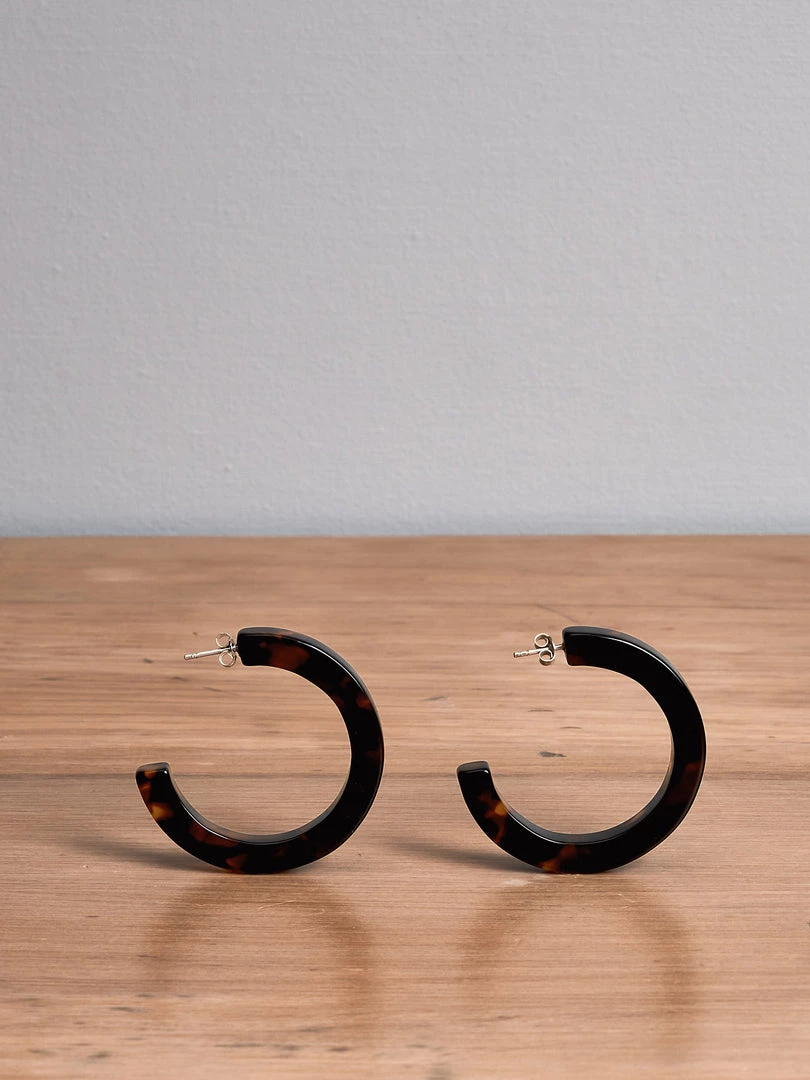 Three quarter acetate hoop earrings with handcrafted sterling silver posts.