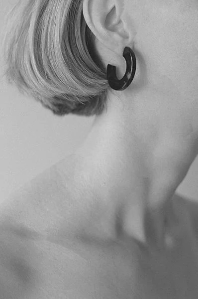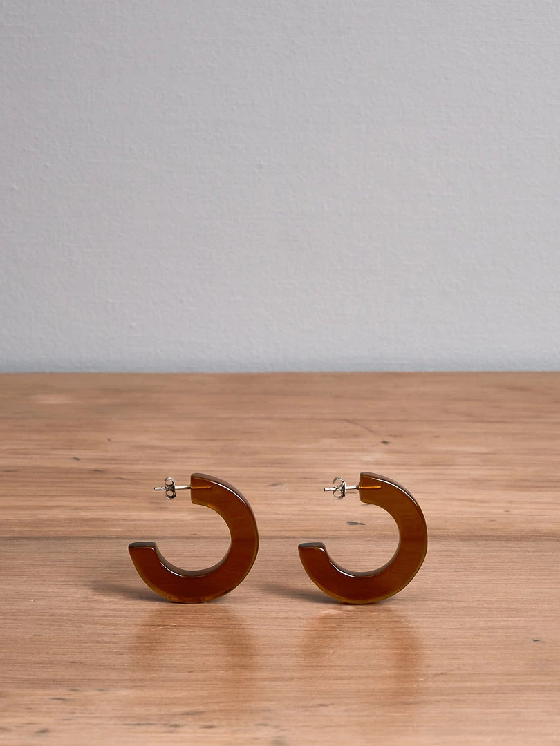 Three quarter acetate hoop earrings with handcrafted sterling silver posts.