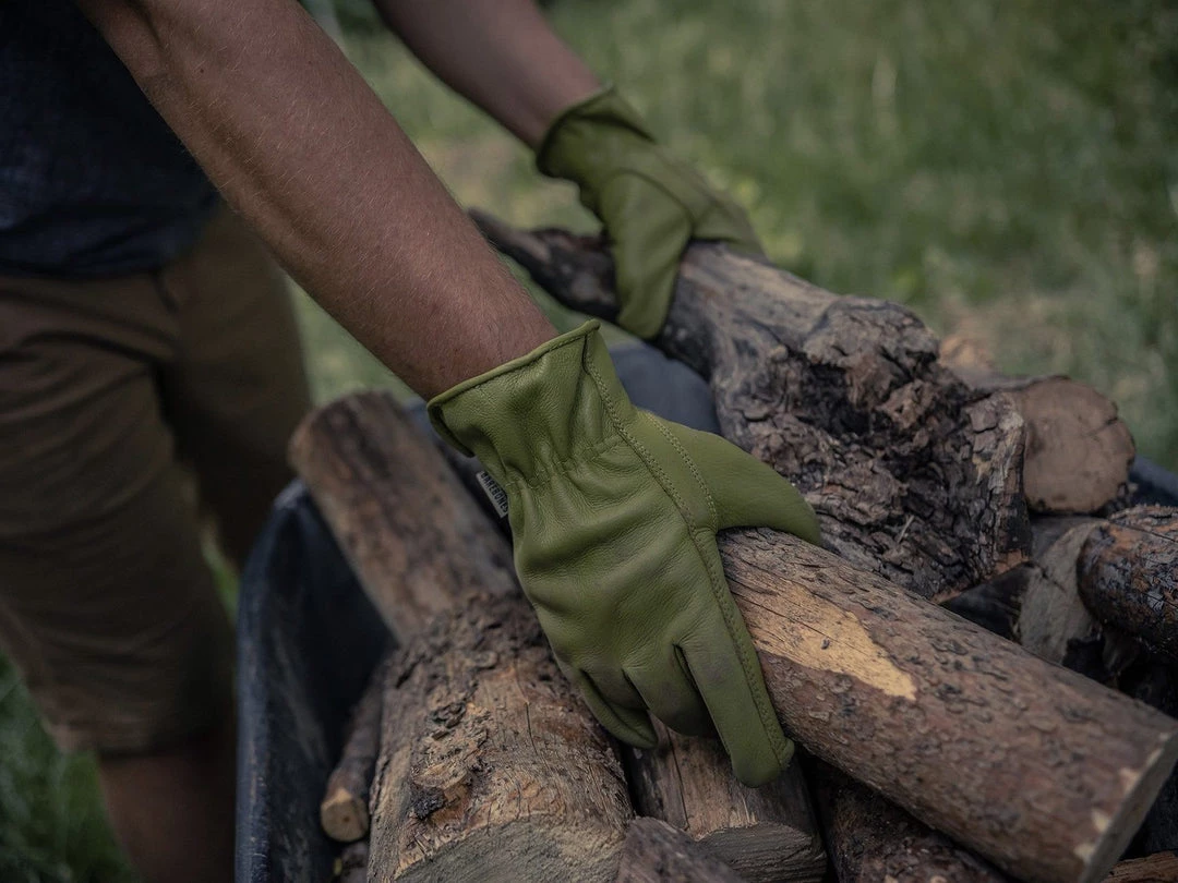 Make quick, painless work of prickly plants, rough soil, dry bark, and grasp wooden tool handles with ease. Barebones re-creation of the classic work glove means maximum comfort, outdoor versatility, and quality protection. The keystone thumb stitch improves dexterity while shirred elastic back keeps gloves in place. Premium grain cowhide is soft, warm, and breathable.