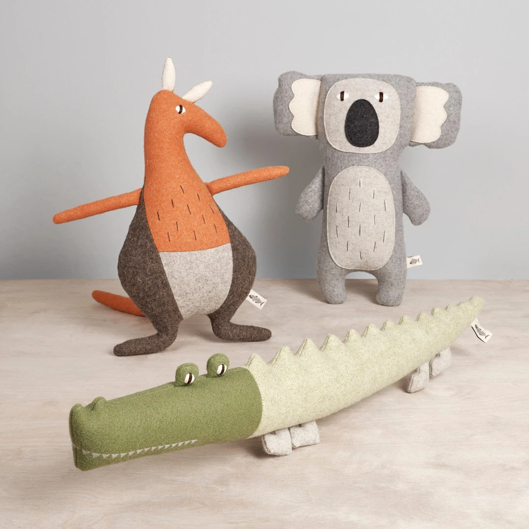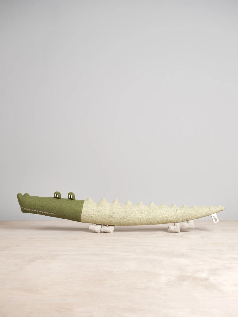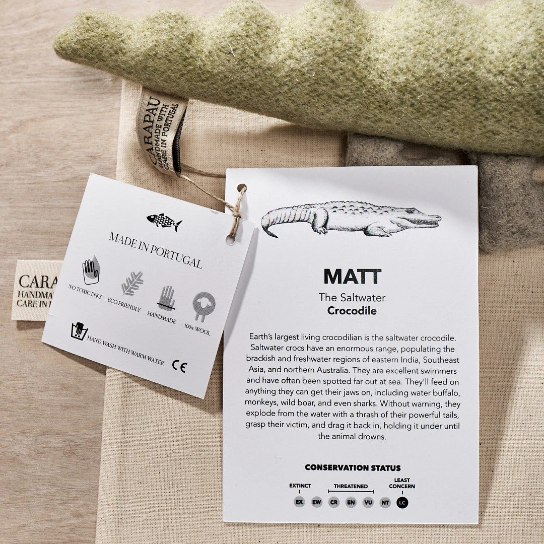 Matt, the Saltwater Crocodile, brings imagination to your child’s playtime. Crafted from pure burel wool, Matt offers many tactile details for your child to explore. From his perky, bulging eyes to the bumpy ‘spikes’ on his back, your baby’s hands will have plenty to pull, squeeze and hold during play and nap time.