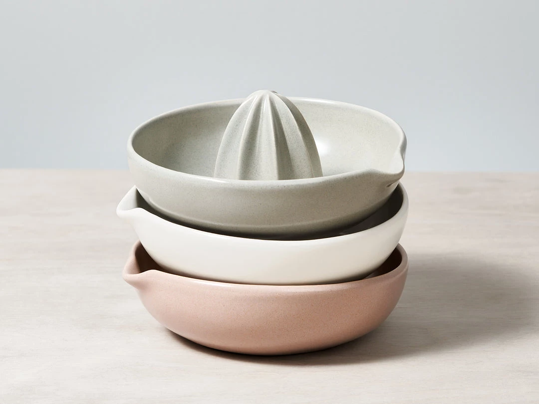Citrus Juicer fits snugly in the hand and is designed to accommodate everything from limes to grapefruit. Its sharp ridges, optimal spout, the ergonomic and simple form makes juicing a pleasure.