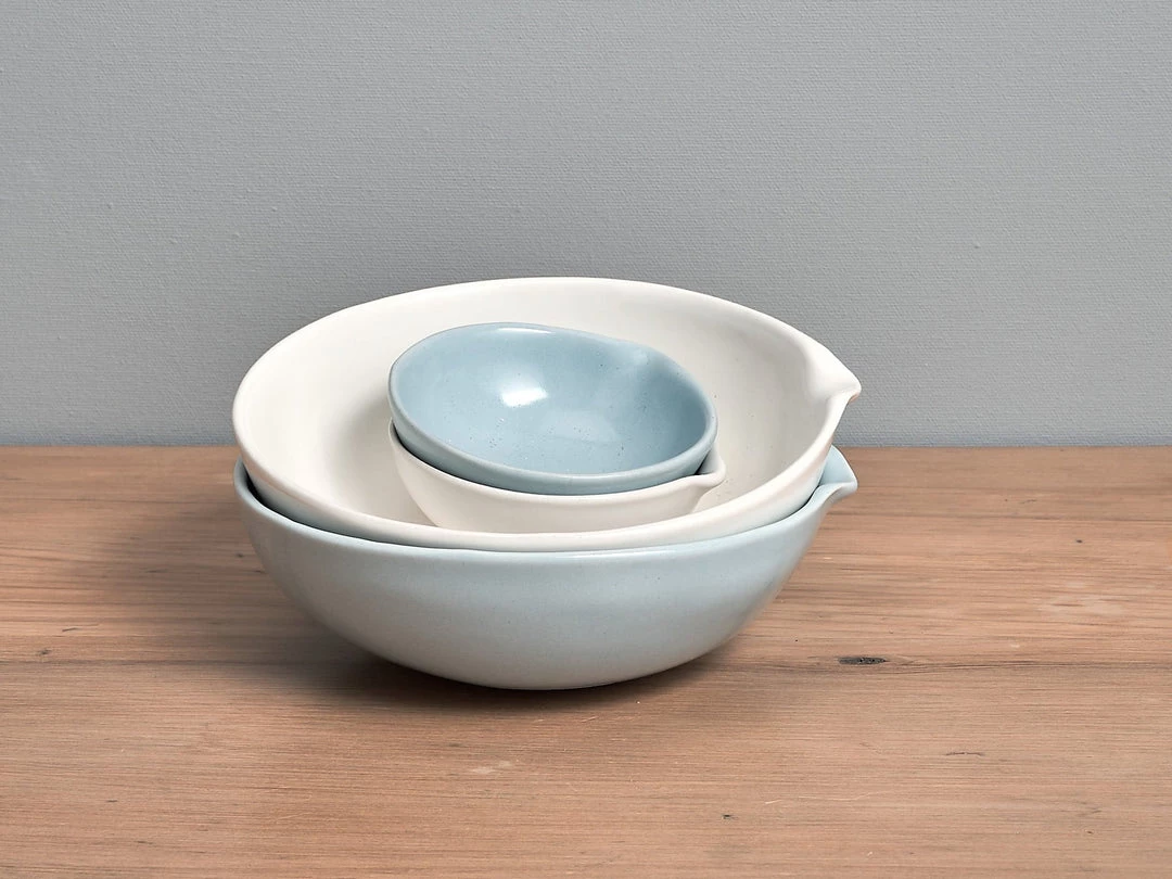 Gidon Bing’s Lab Bowl is both a mixing and serving bowl. It’s gently sloping sides are perfect for mixing, its spout for controlled pouring.
