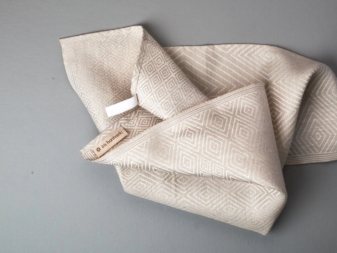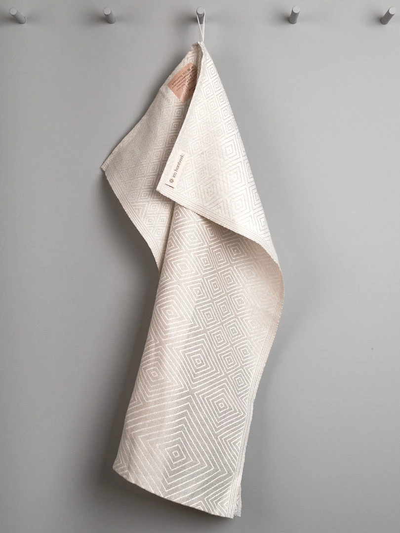 A tea towel in quality 100% unbleached Linen, woven in Sweden with a modern translation of the classic Scandinavian Gasoga pattern design. The natural fibres of linen become softer and more absorbent after each wash, making this ideal for drying dishes, and it works nicely as a hand towel or to tie around a freshly baked loaf of bread. You’ll find these ultra-absorbent, quick-drying and long-lasting. They can be machine washed and tumble dried. Avoid bleaching, dry cleaning and fabric softeners, as fabric softeners can cause the towels to lose their absorbency.