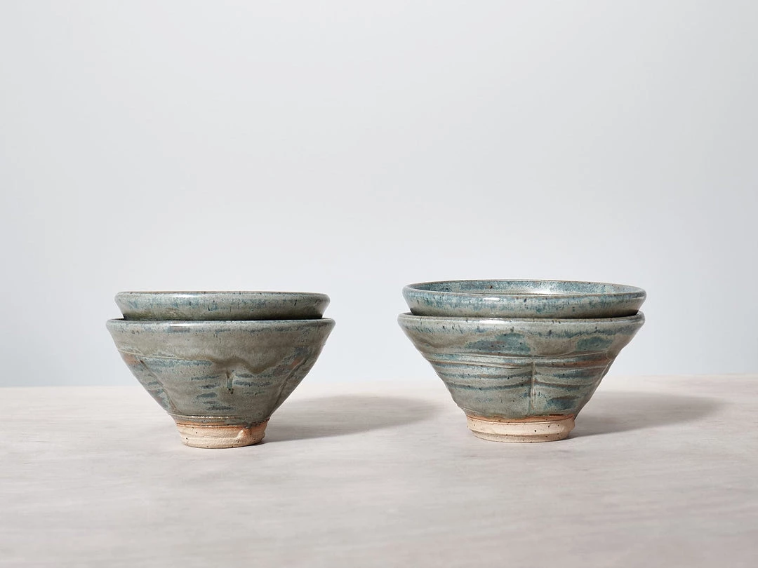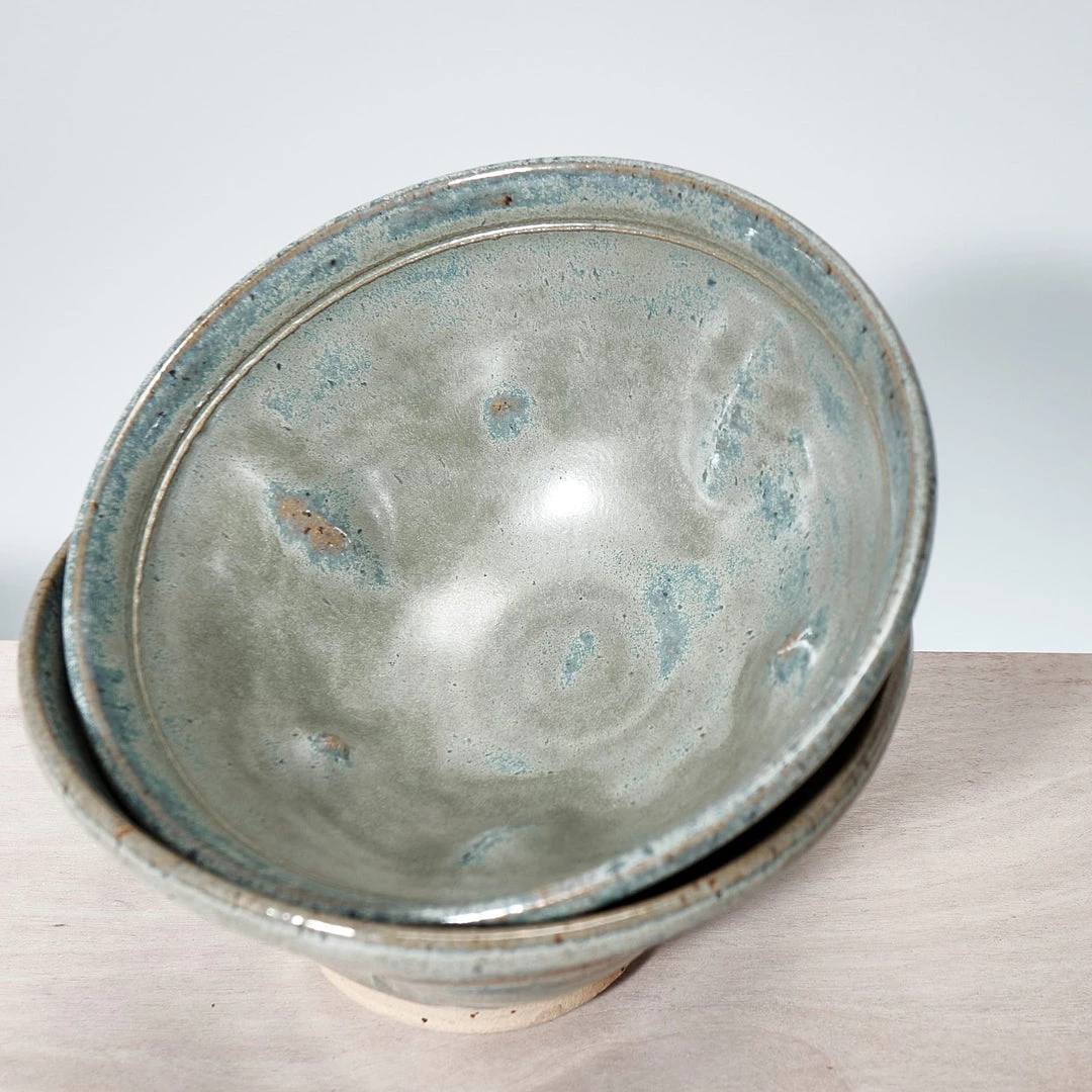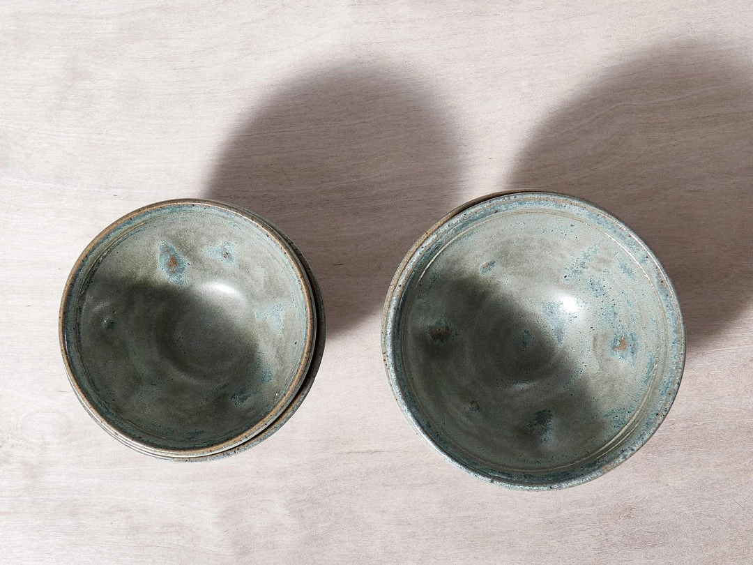 Hand turned, green glaze bowl with dimpled finger holds – perfect for tea, matcha etc.