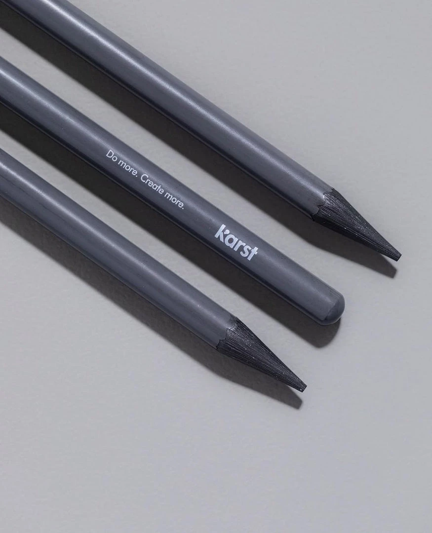 Karst Woodless Pencils come as a set of 5 solid graphite pencils. Made of 100% pure graphite with 2B hardness, it’s the best lead grade for our Karst paper products. Matte coating to keep your fingers clean.