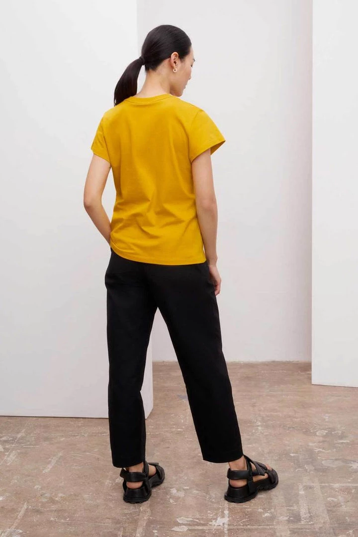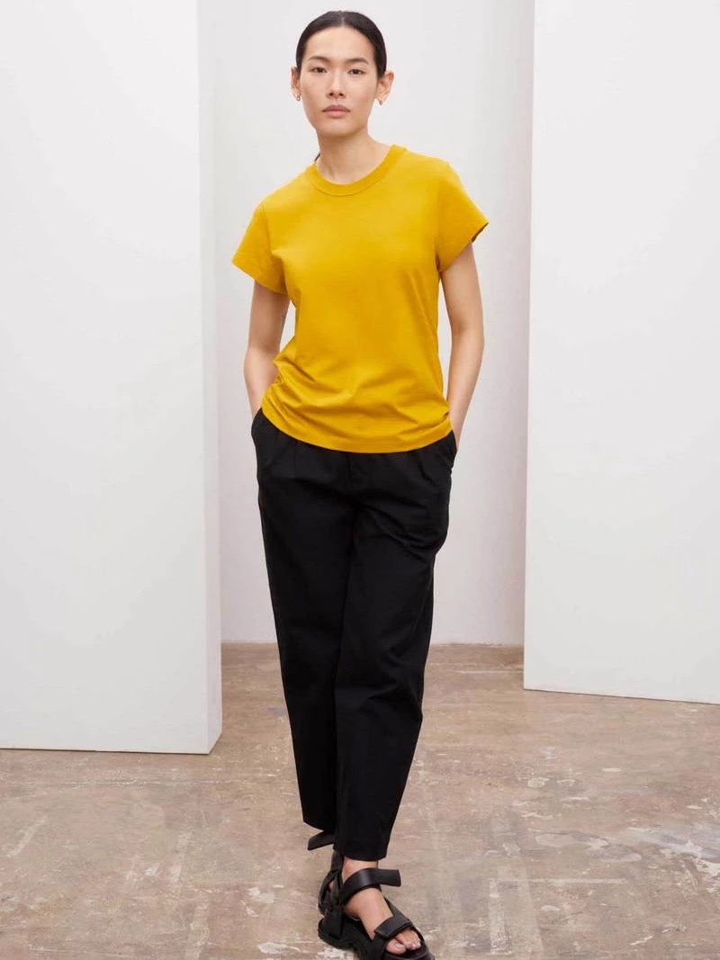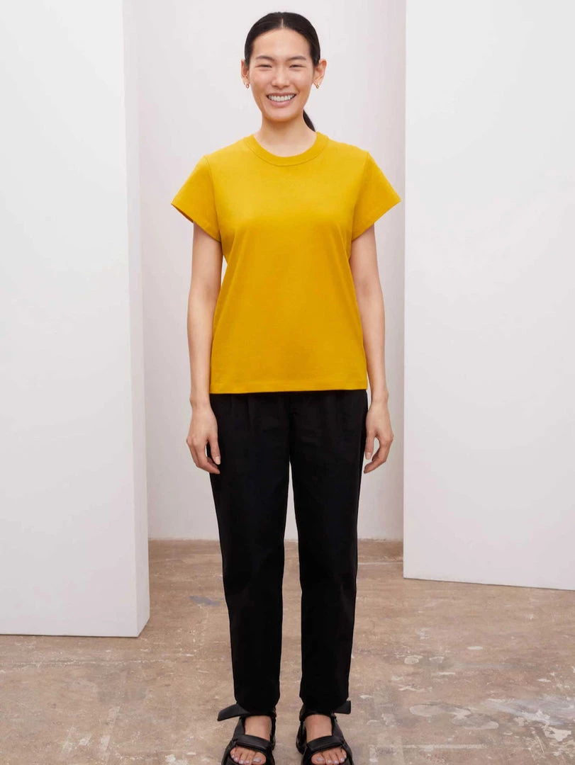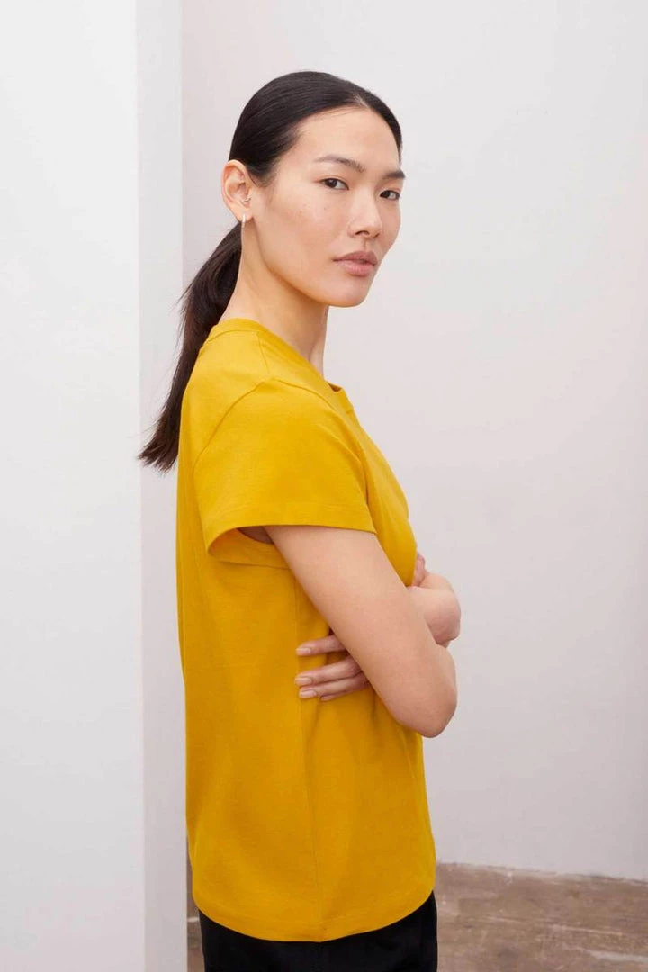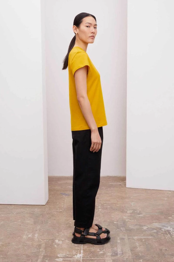 A classic tee with a cap sleeve and a high neckline, made from mid-weight organic cotton jersey.