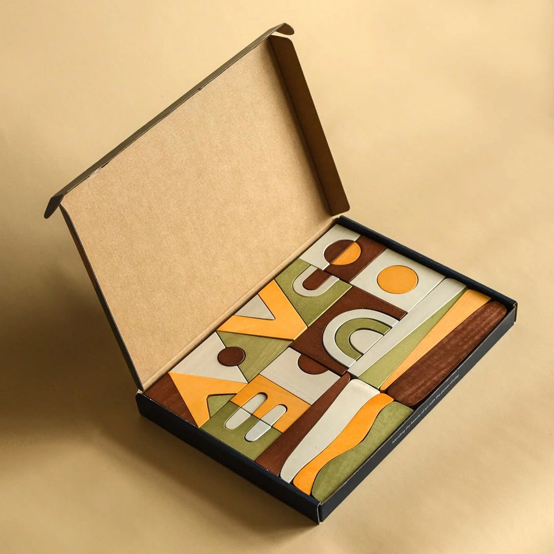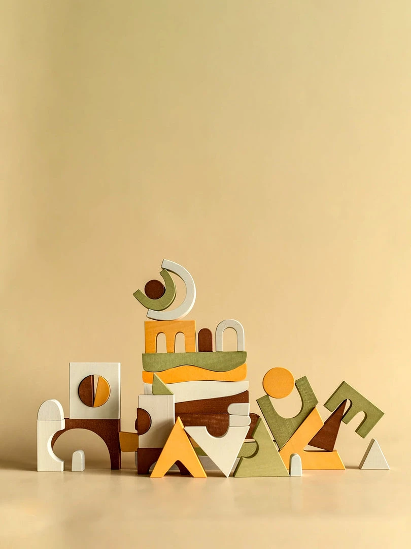 MinMin Copenhagen’s wooden Puzzle Game Blocks are crafted with natural hornbeam wood that has a soft and smooth finish. All shapes are irregular, to make building more challenging but still fun! The possibilities are endless, and you may end up with a mini-architect or engineer in the play process. Available in a variety of unique shapes and deep earthy tones, as well as a pop of sunshine yellow hues for happiness.