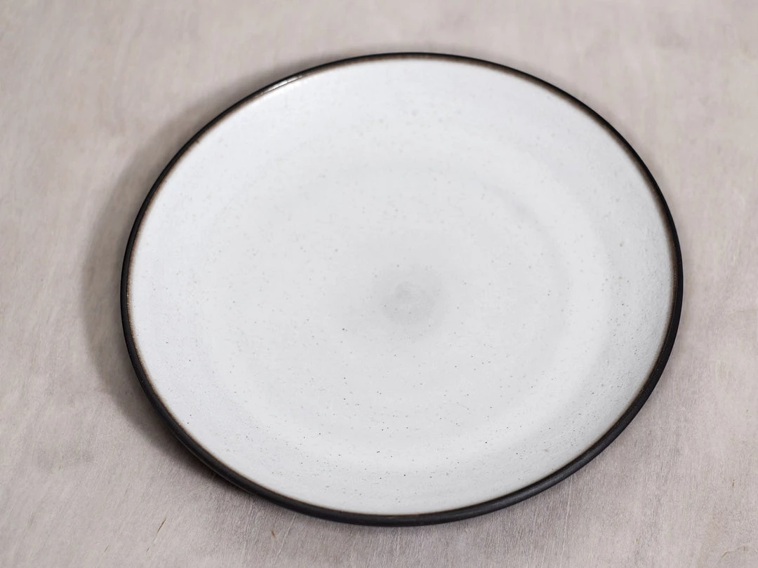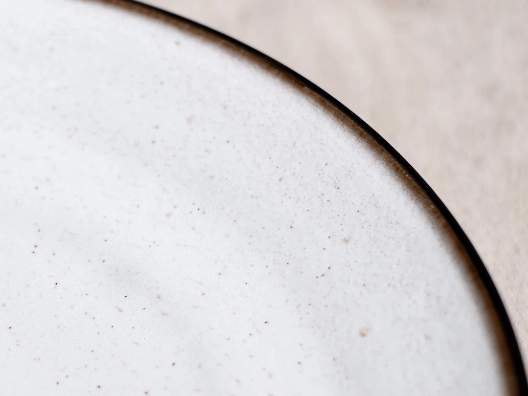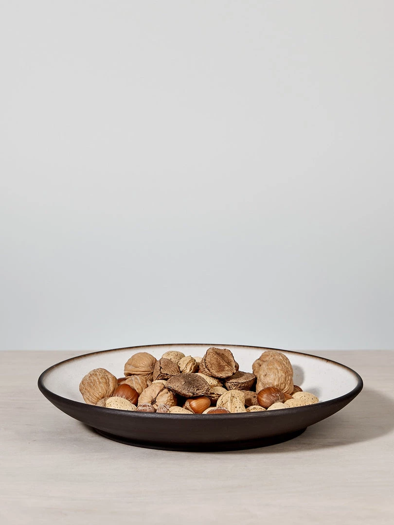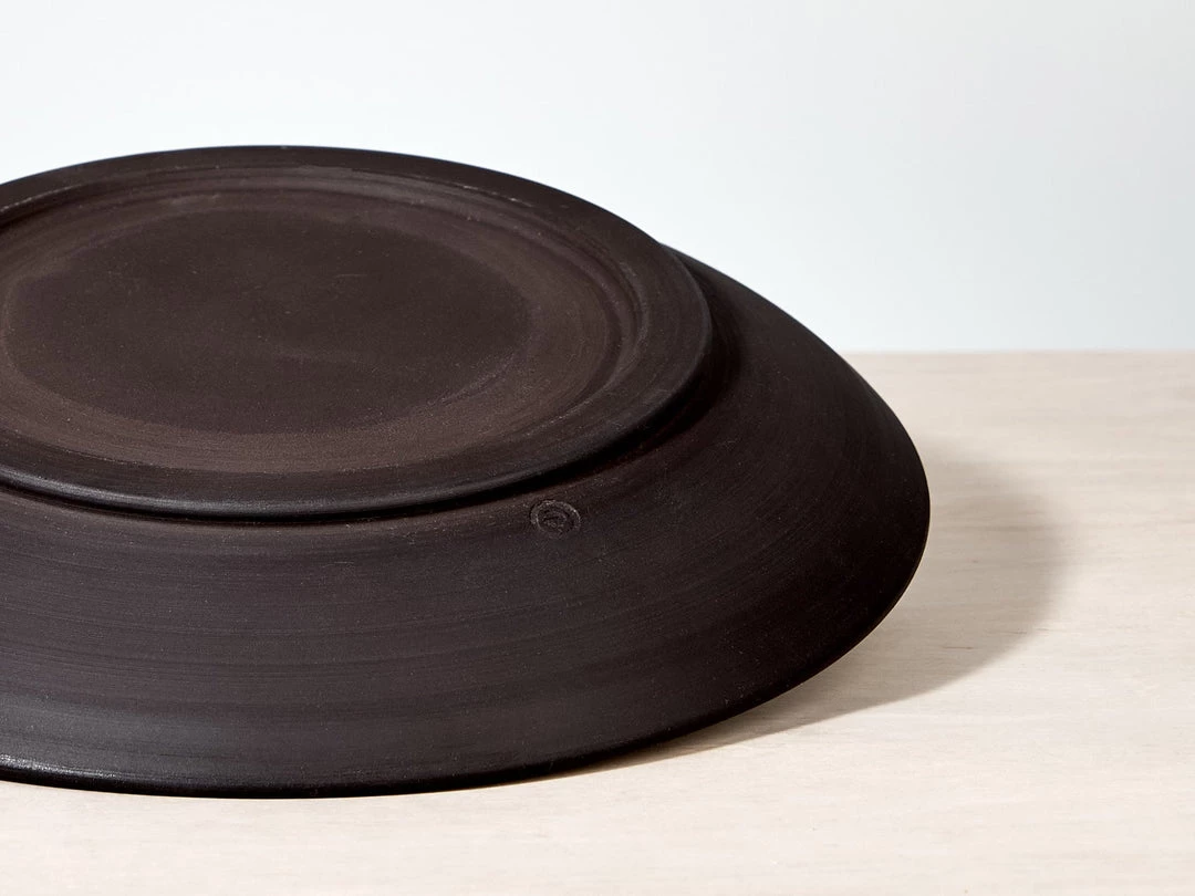 A large platter in Black stoneware clay – raw exterior with a warm white satin interior glaze.