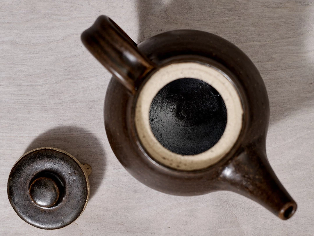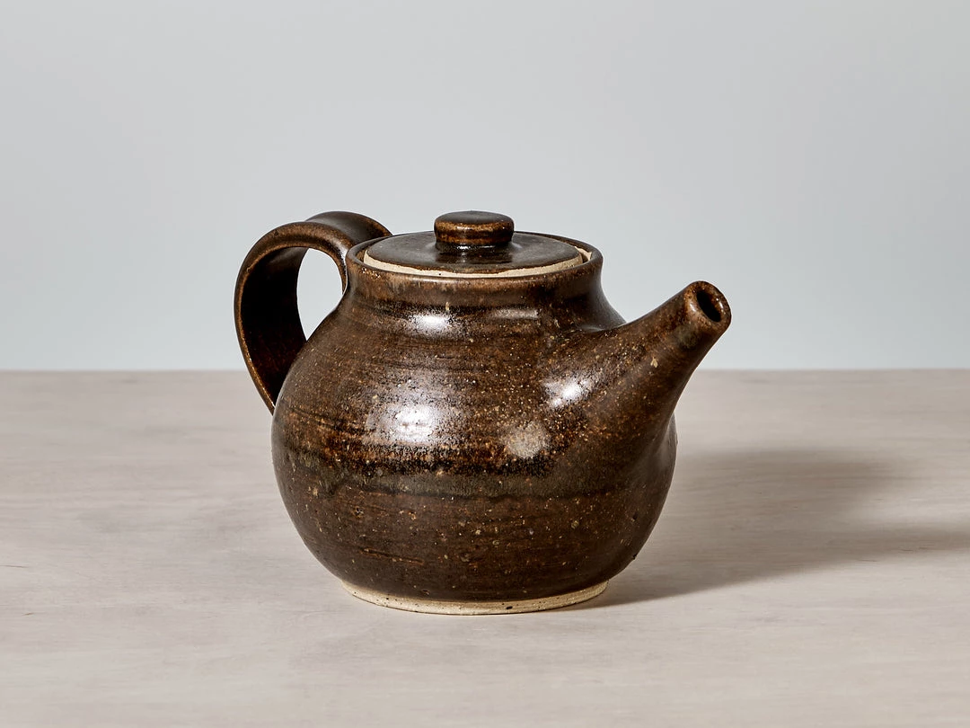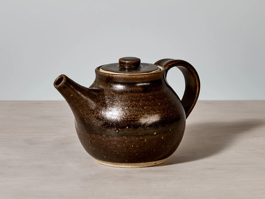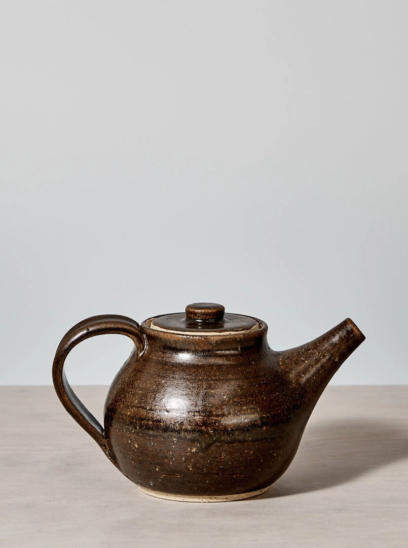 A beautifully proportioned, Tea Pot. A raw, textured base with a Rusty Brown satin glaze.