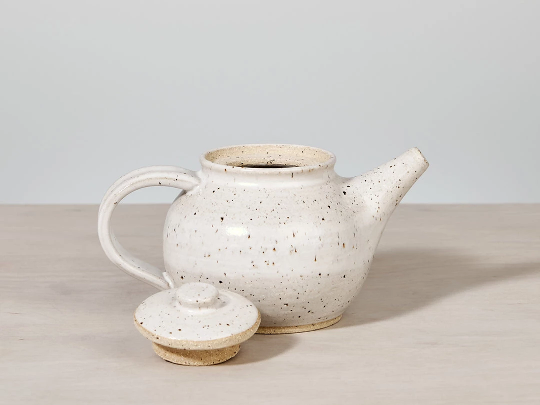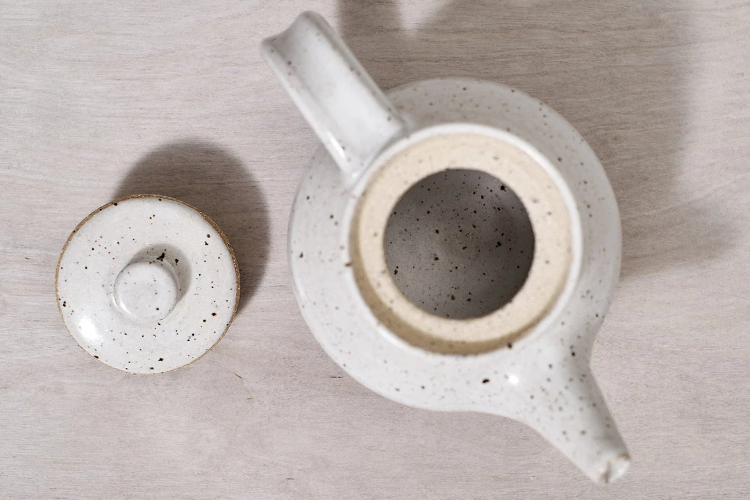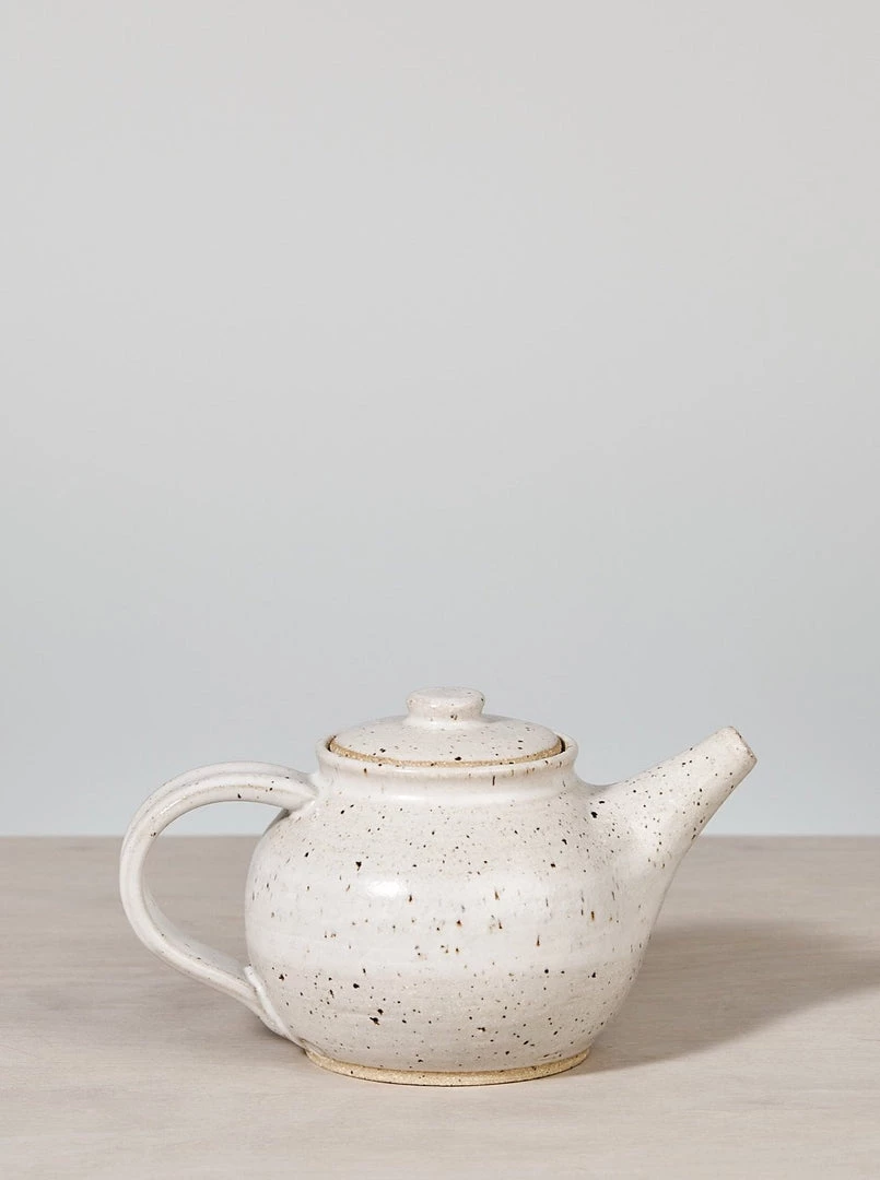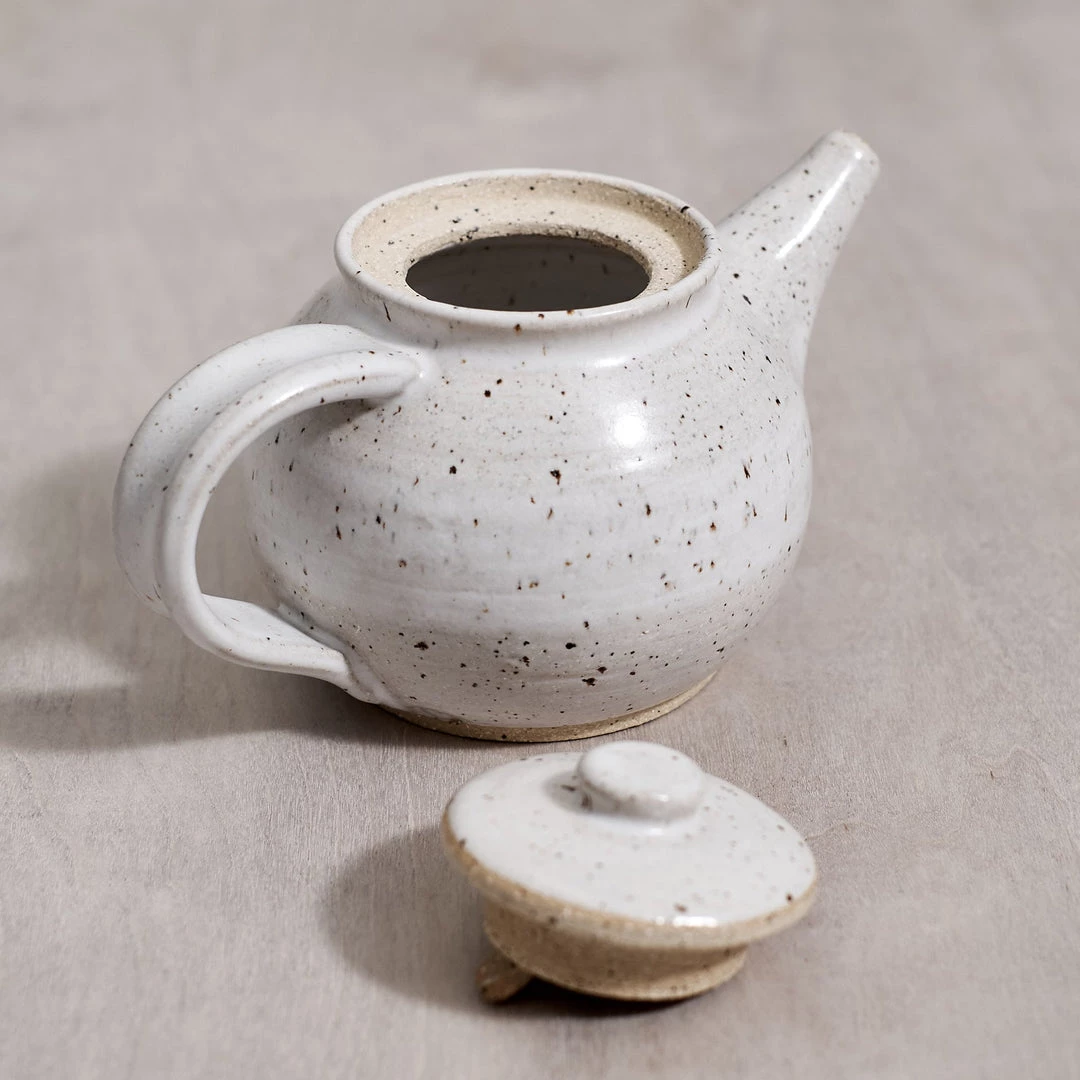 A beautifully proportioned, Tea Pot. A raw, textured base with a warm white satin glaze.
