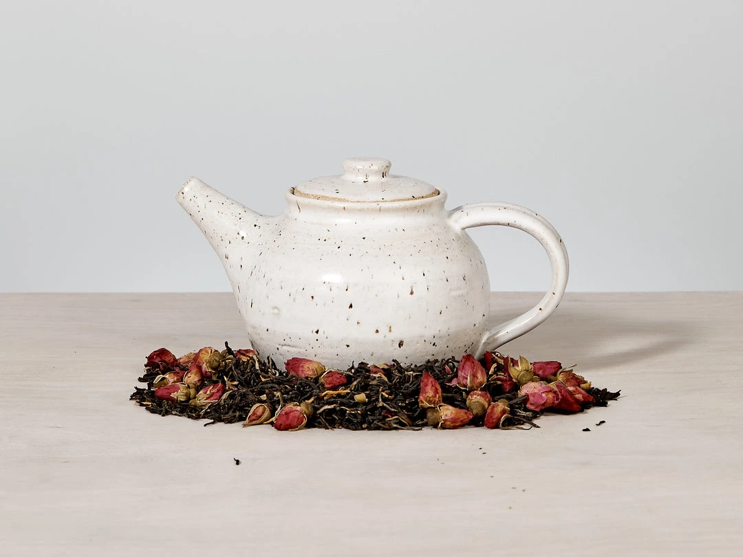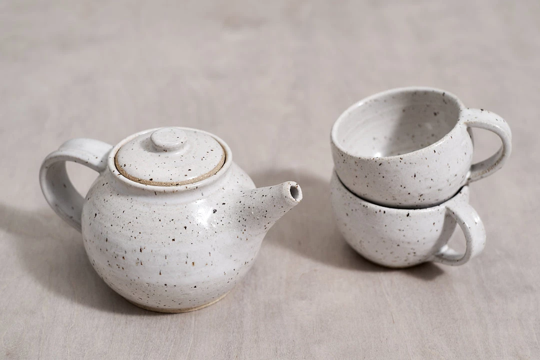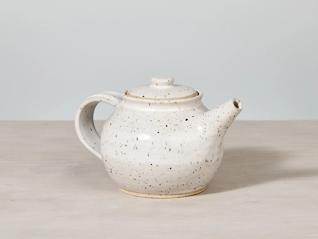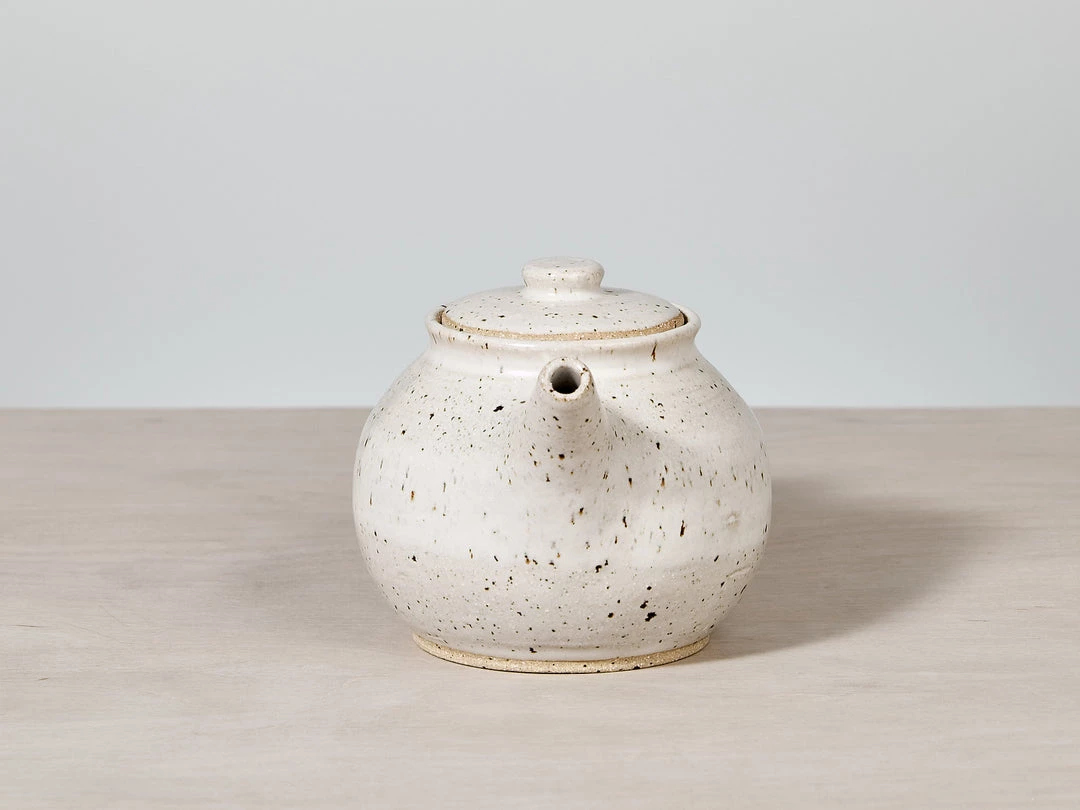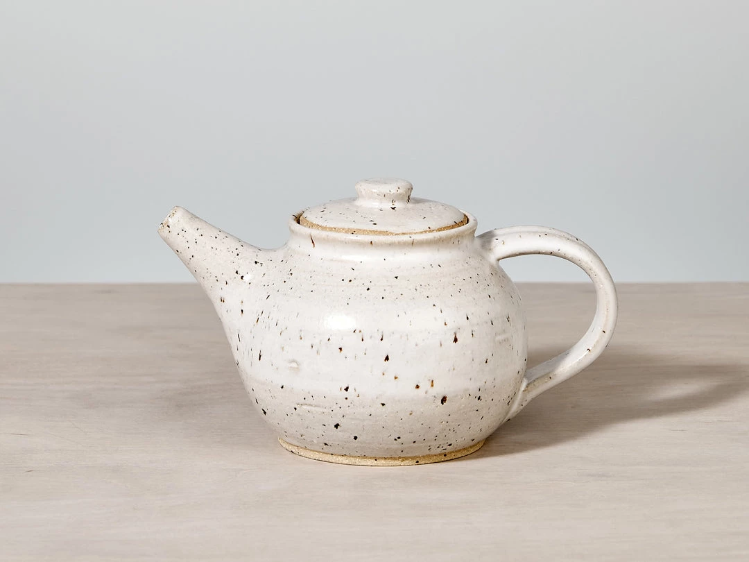 A beautifully proportioned, Tea Pot. A raw, textured base with a warm white satin glaze.
