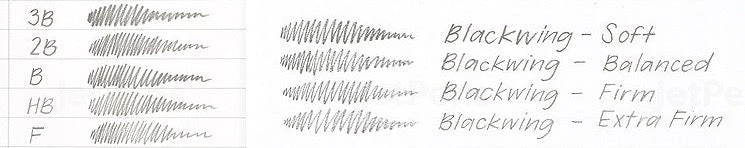 The Blackwing has a soft lead, the Pearl a mid weight lead, the 602 firm and the Natural is the firmest.