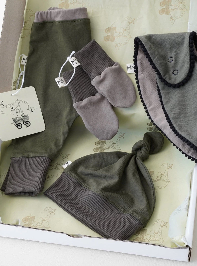 A beautiful baby ensemble by Peppin. A collection for your own baby, or a considered gift box for a Baby Shower.