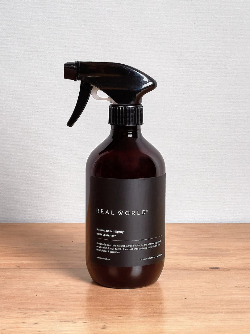 Real World’s non toxic bench spray will be a welcome relief to your daily routine. Spray and use on all your surfaces knowing that there are no harsh chemicals or toxins coming into contact with you or your children’s skin. Using natural anti bacterial essential oil tea tree and spearmint essential oil to cut through the grease. It will leave any bench top glistening. A perfect match for your Real World Dishwashing Liquid.