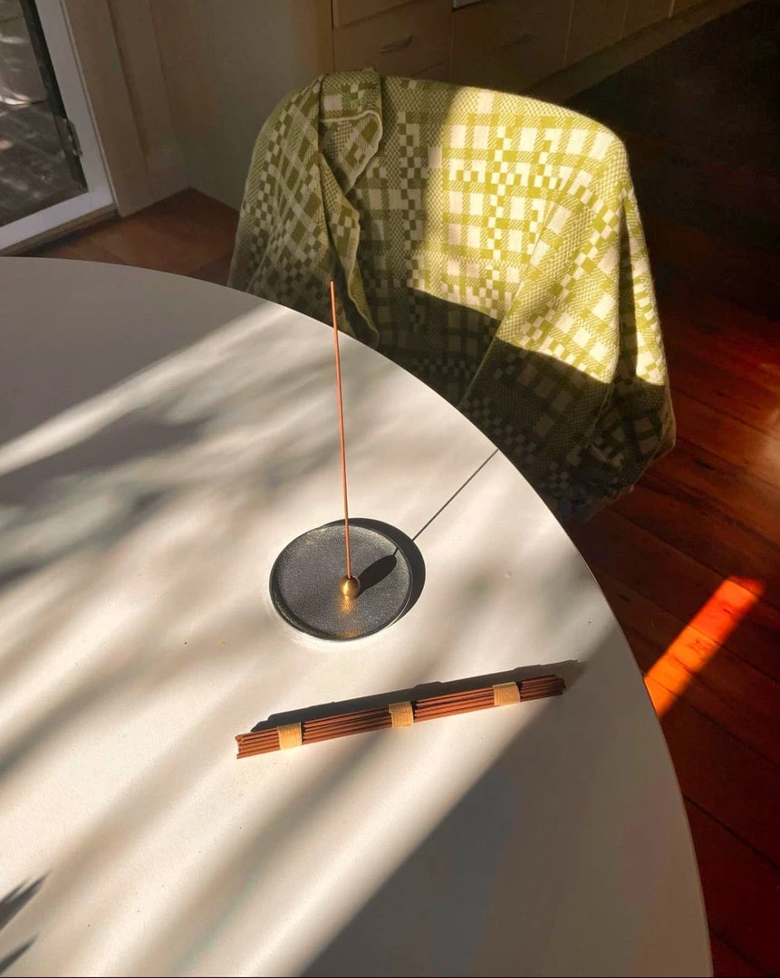 ﹡Light the tip and gently fan out the flame, then insert the incense into the holder. Use a proper incense burner or stand made from heat-resistant material.