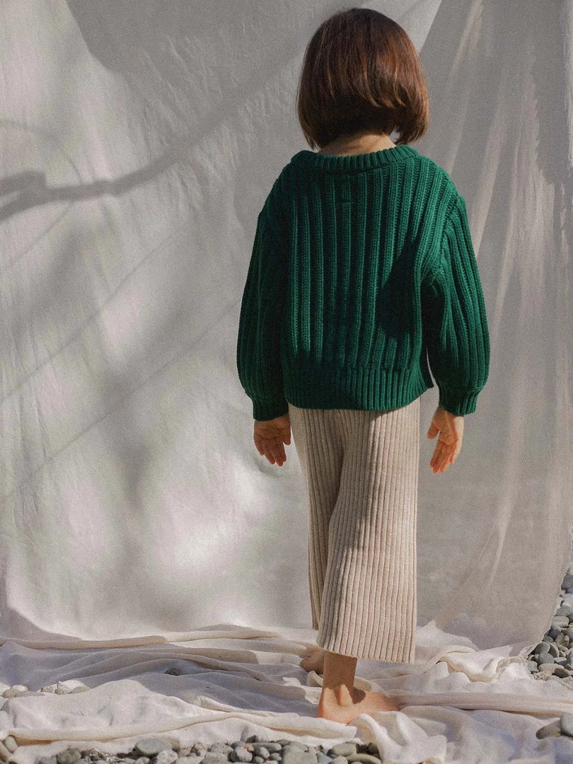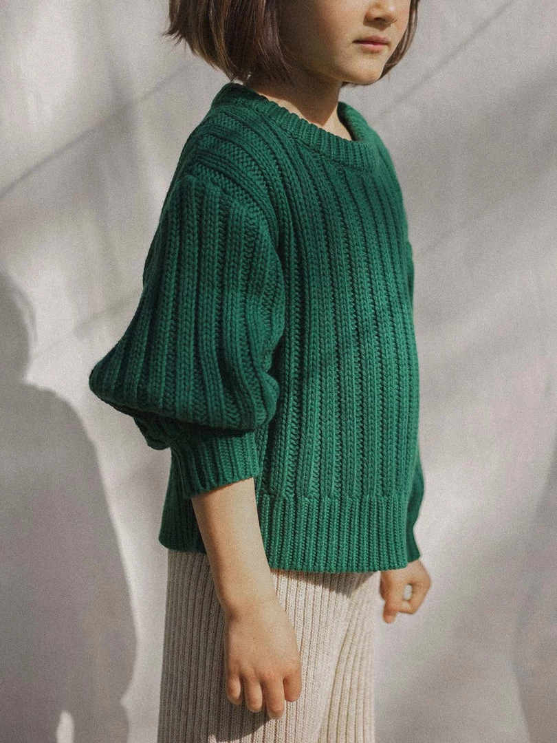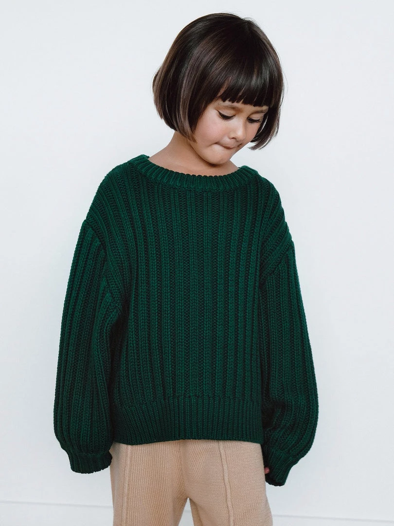 A wardrobe staple; this fully fashioned, thick cotton rib knit is made for every day and features a crew neck, drop shoulder, wide sleeves and tight cuffs.