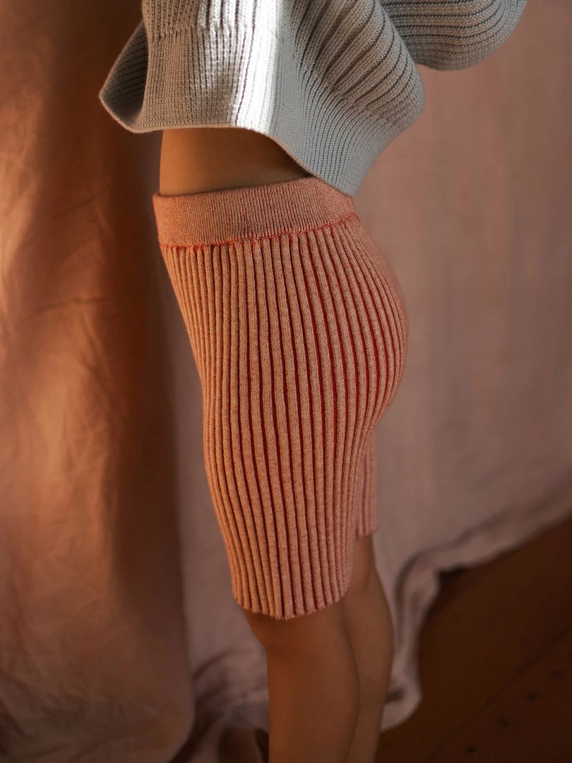 A new style to Sunna; the fully fashioned Rue Short features a two-tone rib and elasticated waistband.