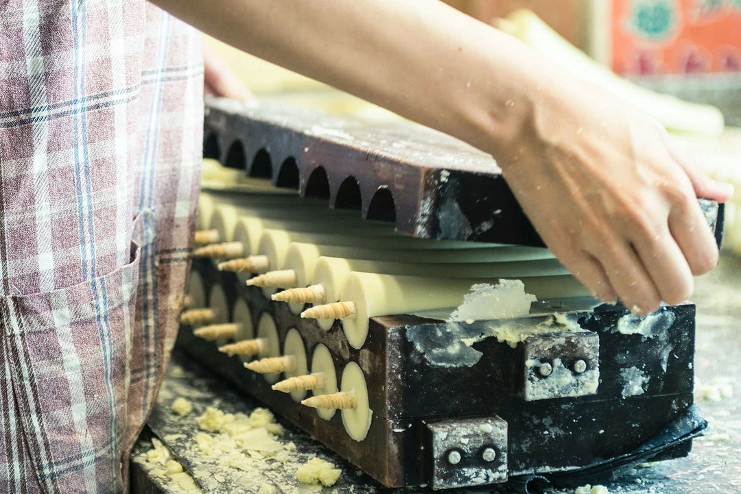 Depending on the soil of the Haze tree cultivation area, and the year of wax accumulation, Takazawa Candles result in a variety of soft colours. The beautiful white powder appearing on the surface of each candle is a reliable proof of the natural material contained within.