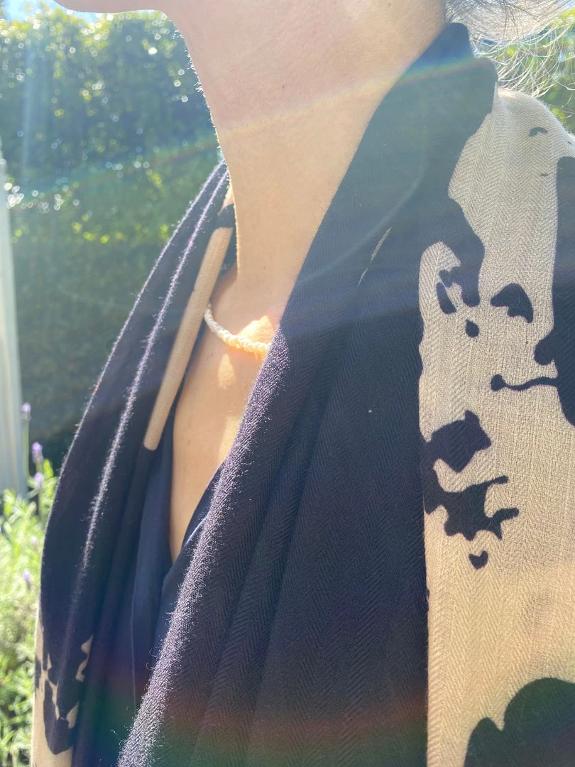 Our luxurious soluble wool Nita scarf, so beautifully lightweight and yet warm for these spring days.