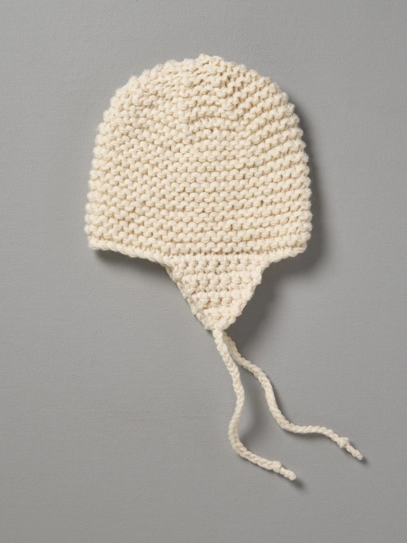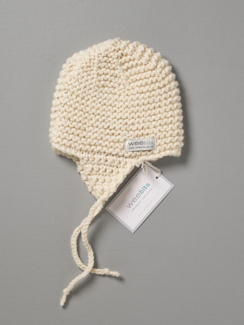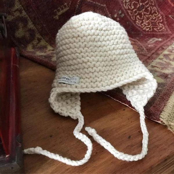 This adorable 16 ply hand knitted beanie is thick and fits snugly on baby’s head for extra warmth, yet there’s plenty of stretch to allow for growing babies. Earflaps keep the ears warm and snug and can be tied under the chin or left loose – either way, the ears will be covered. The perfect baby gift.