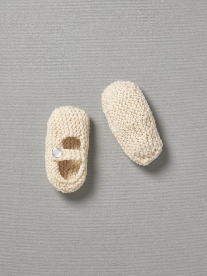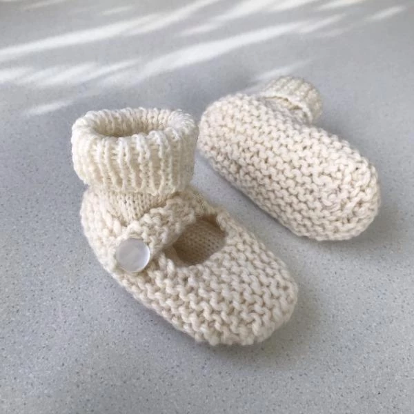 Super cute knitted merino version of the classic Mary Jane shoes that we all know and love. These booties mould to the feet and feature a side button fastening which keeps them snug on baby’s feet. These shoes make a fantastic baby shower gift.